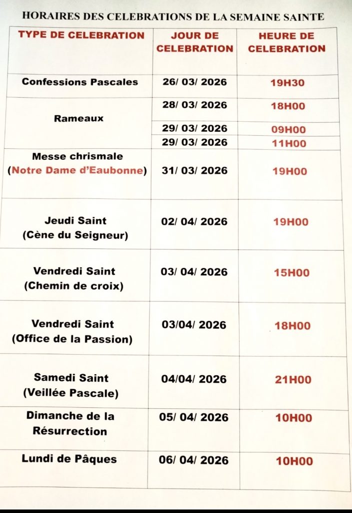 Tous les événements HORAIRES DES CÉLÉBRATIONS DE LA SEMAINE SAINTE